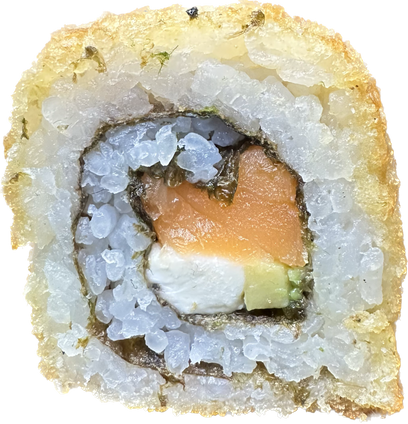 Salmón, aguacate, queso philadelphia y todo el rollo tempurizado