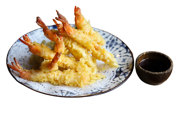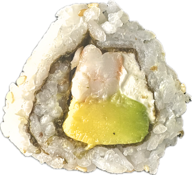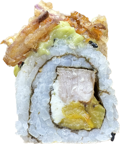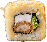 Langostino, queso Philadelphia, aguacate y todo el rollo tempurizado