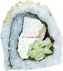 Langostino, queso Philadelphia, aguacate y topping de sesamo